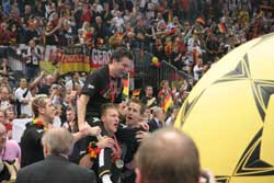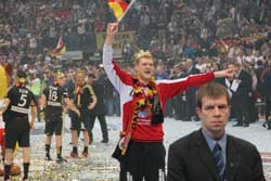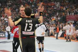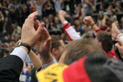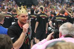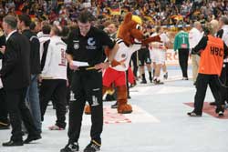 Bredemeyer vom Deutschen Handballbund (links) glücklich,