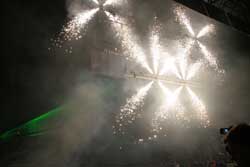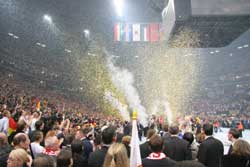 und romantisch - Laser und Feuerwerk in der Kölnarena nach dem Spiel.
