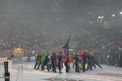 Außerdem Tänzer, die die teilnehmenden Nationen darstellen (unten).